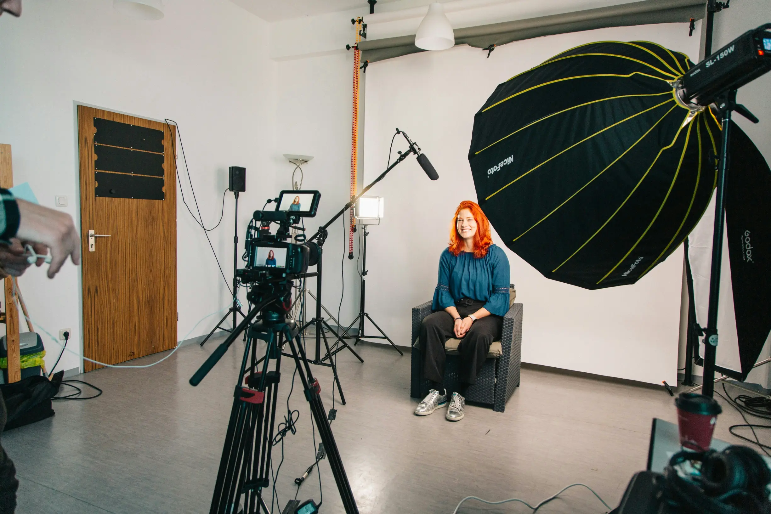 Le tournage d’une vidéo interview d’entreprise ne doit pas ressembler à un interrogatoire. Dès l’arrivée du collaborateur sur le plateau, l’ambiance doit être détendue : musique de fond discrète, café disponible, équipe souriante.